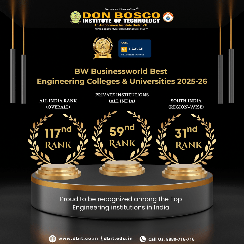 Don Bosco Institute of Technology (DBIT) was recognized in the BW Businessworld Best Engineering Colleges & Universities 2025–26 rankings, reaffirming its position as a leading institution in engineering education.